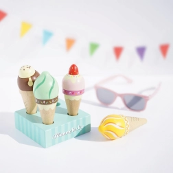 De HONEYBAKE houten ijsset van Le Toy Van tovert elke kinderkamer om in een mini-ijssalon. Vier verschillend gedecoreerde bolletjes op natuurlijke hoorntjes zijn met de hand beschilderd met milieuvriendelijke verf op waterbasis en geplaatst op een stijlvolle standaard voor een overzichtelijke presentatie.