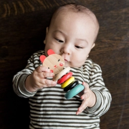 - Rammelaar met vijf houten ringen, rustgevend geluid