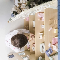 Het huis is met de hand afgewerkt met milieuvriendelijke, watergedragen verven en gemaakt van hoogwaardig hout uit duurzame en hernieuwbare bronnen. Het stimuleert fantasievol spel, ontwikkelt de oog-handcoördinatie en dankzij het genderneutrale ontwerp spreekt het alle jonge verhalenbouwers aan. Compatibel met meubels, poppen en accessoires uit de Daisylane-collectie. Meubels en poppen zijn niet inbegrepen.
