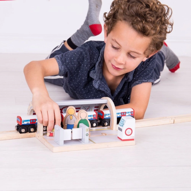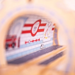 Het station is ontworpen om perfect aan te sluiten op thuis-trainbanen. Dankzij de compatibiliteit met de meeste houten systemen koppel je het gemakkelijk aan rails en andere elementen – zo kunnen kinderen hun stad uitbreiden en nieuwe verhalen verzinnen.