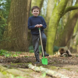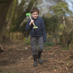 De gladde, robuuste steel van natuurhout ligt prettig in de hand en helpt kinderen met vertrouwen te graven met minder vermoeidheid.
