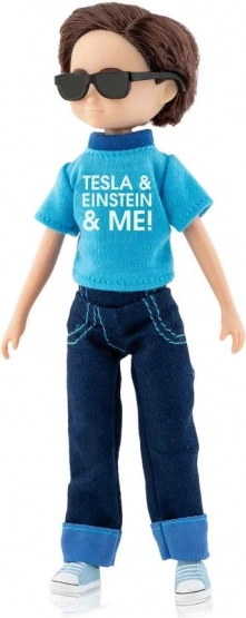 Lottie Finn is een modern poppetje dat kinderen inspireert tot vriendelijkheid, moed en het verkennen van de ruimte. Dankzij zacht ftalaatvrij vinyl voelt hij prettig aan en de stabiele constructie maakt zelfstandig staan en realistische poses mogelijk. Het stijlvolle T-shirt “TESLA & EINSTEIN & ME”, jeans en blauwe sneakers worden aangevuld met een trouwe metgezel – hondje Cookie.