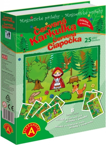 Ontdek de leuke wereld van magnetische verhalen met het thema Roodkapje. Kinderen leggen magnetische prentjes op de magnetische achtergrond volgens de voorbeelden op de kaartjes, of verzinnen hun eigen combinaties en verhalen. Het spel werkt ook als een klein magnetisch theatertje dat op natuurlijke wijze de fantasie en communicatieve vaardigheden ontwikkelt.