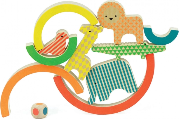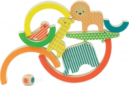 Het spel bevat 5 verschillende dieren, 5 regenboogstukken en een veelkleurige dobbelsteen, wat talloze combinaties voor het bouwen biedt. Of het kind nu alleen speelt of met vrienden, dit spel stimuleert hun creativiteit en logisch denken.