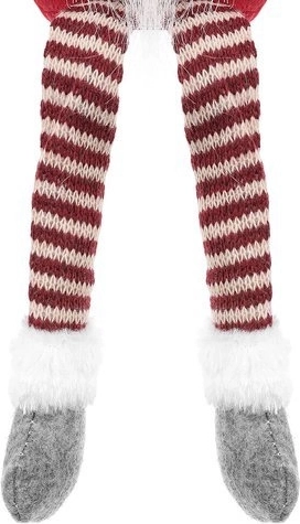 De lange rode muts, witte baard en gestreepte benen zorgen direct voor kerstsfeer in elke kamer.
