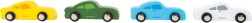 - Complete set – in de doos zitten vier houten sportautootjes.