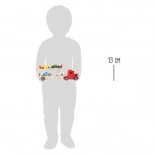 Geef kinderen realistisch speelplezier met deze houten autotransporter die vier kleurrijke sportautootjes kan vervoeren. Koppel de aanhanger aan de trekker, klap het bovendek omlaag en rij de auto’s comfortabel via de helling naar boven of beneden. De barrière op het opgeklapte dek voorkomt ongewenst terugrollen – alles is klaar voor lange en veilige ritten.