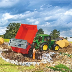 De kiepwagen is gemaakt van ABS-kunststof, wat langdurige levensduur en weerstand garandeert. Dankzij de geprofileerde banden laat hij realistische sporen achter op verschillende ondergronden. De aanhanger is gemaakt in Duitsland en staat voor de verwerkingskwaliteit die typisch is voor Bruder-producten.