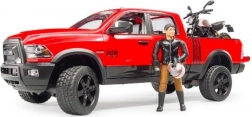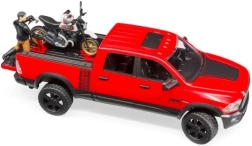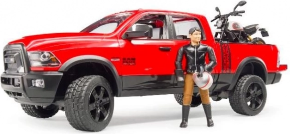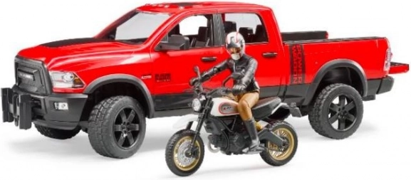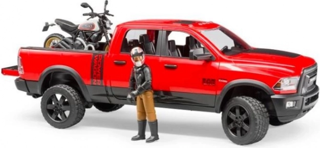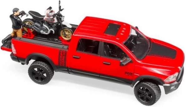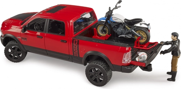 - Ram pick‑up, Ducati Scrambler motorfiets, bestuurdersfiguur