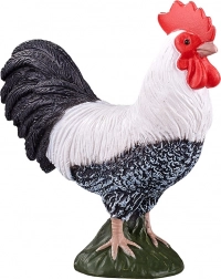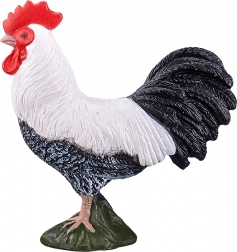 Natuurgetrouw gevormde veren, contrasterende zwart-witte kleuring en een rode kam voor een authentieke haanuitstraling.