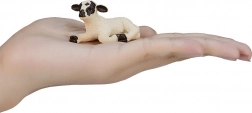 Dit kwalitatief afgewerkte figuur beeldt een Hampshire-lam in liggende positie natuurgetrouw uit. De realistische “wol”-textuur, contrasterende kleuring en precieze details stimuleren fantasie, thematisch spel en kennismaking met dieren.