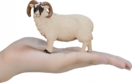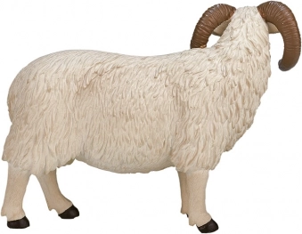 Deze gedetailleerde Hampshire-ramfiguur vangt getrouw de karakteristieke kenmerken van het ras – een robuuste lichaamsbouw, opvallend gedraaide hoorns en een realistische “wol”-structuur. Dankzij de zorgvuldige afwerking is hij perfect voor spel, onderwijs en thematische presentaties.