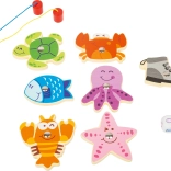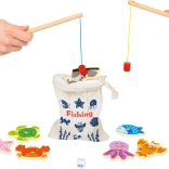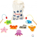 Tijdens het spel vangen kinderen verschillende kleurrijke zeedieren met twee magnetische hengels. Het spel wordt aangevuld met een gekleurde dobbelsteen die bepaalt welk dier moet worden gevangen. Alles is verpakt in een praktisch stoffen zakje, ideaal om mee te nemen op reis.