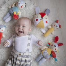 Het konijntje dient als rammelaar, bijtring en knuffel, waardoor het een zeer veelzijdig speeltje is.