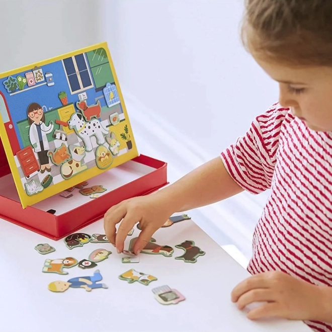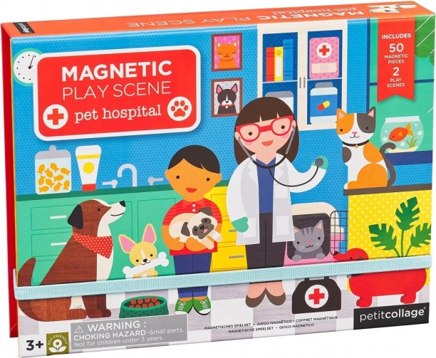 Zoek je het perfecte speelgoed voor kleine dierenliefhebbers? Magnetisch spel: Dierenkliniek is de ideale keuze! Deze set bevat twee magnetische borden en 50 magnetische stukken, waarmee kinderen hun eigen verhalen en scènes kunnen creëren. Het praktische opvouwbare doosje maakt het eenvoudig om alles op te bergen en snel op te ruimen.