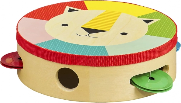 Deze hoogwaardige houten tamboerijn van populierenmultiplex maakt beginnende muzikanten en hun ouders blij. Het lichte en comfortabele handvat, de veilige plantaardige verven en de lak op waterbasis zorgen voor onbezorgd speelplezier. Het vrolijke leeuwenmotief en de krachtige kleuren ondersteunen het gevoel voor ritme, kleurherkenning en motorische vaardigheden.