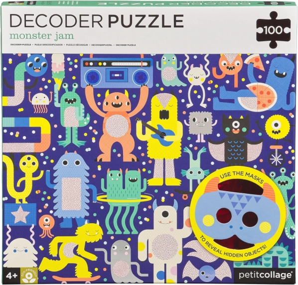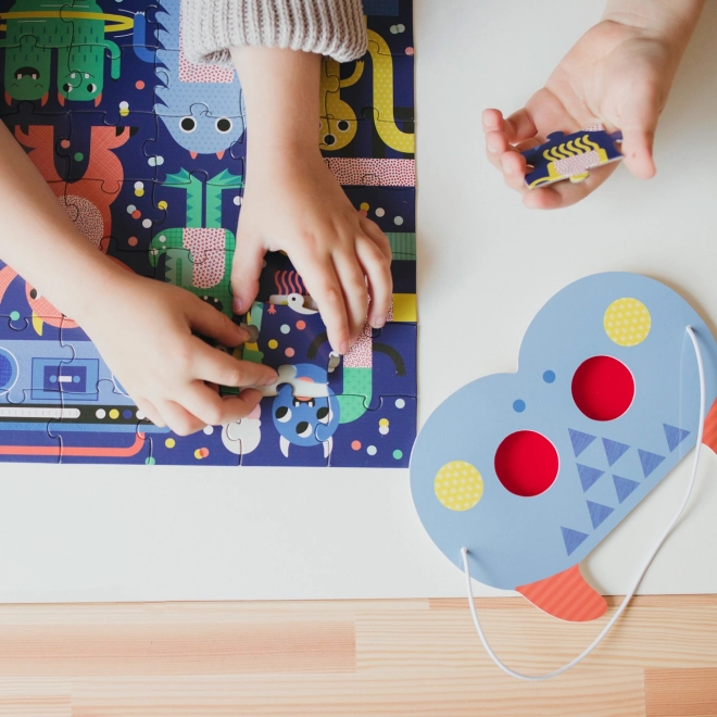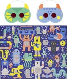 Door twee gekleurde 3D-maskers op te zetten verandert het plaatje en kunnen kinderen verborgen objecten zoeken – een leuke uitdaging die verbeeldingskracht en aandacht stimuleert.