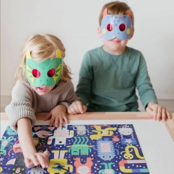 Ontdek de speelse wereld van het monsterfestival, waar kinderen eerst een kleurrijke puzzel leggen en daarna speciale 3D-maskers opzetten om verborgen objecten te onthullen. Het spel combineert slim plezier met leren en ontwikkelt concentratie, geduld en visuele waarneming.