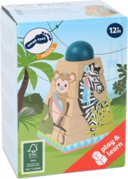 Deze kwalitatieve stapeltoren met Jungle-thema biedt vijf kleurrijke onderdelen en een veilige centrale pin, waardoor kinderen eenvoudig kunnen stapelen en vormen en kleuren ontdekken. De illustraties met dieren springen direct in het oog en stimuleren concentratie en spelenderwijs leren.