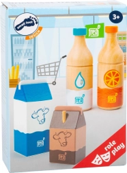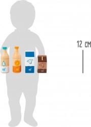 Geef uw kinderen plezier met het spelen met de vierdelige drankenset, die een lepel sinaasappelsap, een fles water, een doos verse melk en een kleine cacao met rietje bevat. Deze set is ideaal voor het simuleren van keuken- of winkelspelletjes.