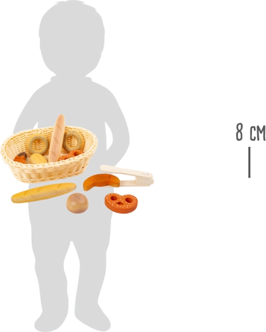 Ontdek de magie van bakkersspel met deze hoogwaardige houten bakkerijset van Small Foot. De set bevat een gevlochten mand, een tang en een gevarieerde selectie gebak zoals baguettes, pretzels, broodjes en donuts – ideaal voor de kinderkeuken en het winkeltje. Stimuleert rollenspel, fijne motoriek en communicatie.