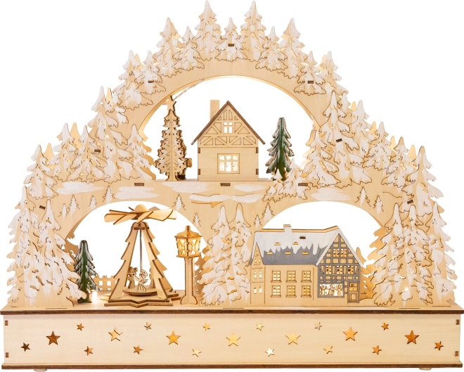 Ambachtelijke uitstraling, precieze uitsnijdingen van bomen en huisjes en de natuurlijke houttint maken van de boog een opvallend middelpunt van je kerstdecoratie in het raam of op het dressoir.