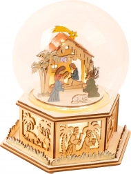 Deze prachtige lichtdecoratie is gemaakt van hoogwaardig hout. De muziekdoos met een kerststalthema speelt de melodie "Stille Nacht". Terwijl de muziek speelt, verspreidt de verlichte feestelijke bol een zacht licht. Batterijen zijn niet inbegrepen. Belangrijkste kenmerken: feestelijke bol en muziekdoos in één voor een gezellige kerstsfeer, fijn en subtiel uitgesneden details, voldoet aan de Europese veiligheidsnorm.