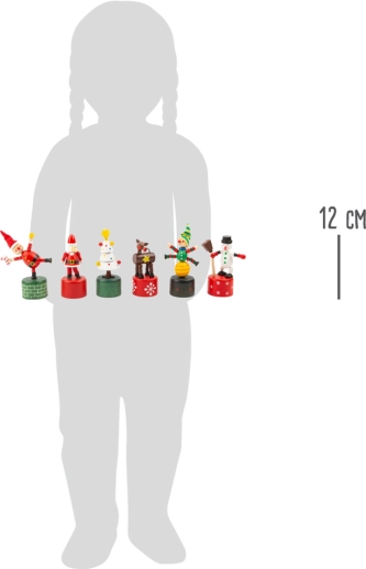 Set van 12 stuks. Beweegt die sneeuwman echt? Ja, dat klopt. Enkele houten kerstfiguren bewegen heen en weer, maar alleen als je op de knop aan de onderkant van hun voetstuk drukt. Geschikt als cadeau tijdens de advent.