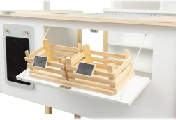 Bevat een weegschaal, kantelbare planken, schrijfboards, een koffiezetapparaat en opbergruimtes met bakken, die de creativiteit van kinderen bevorderen en tot eindeloos spel inspireren.