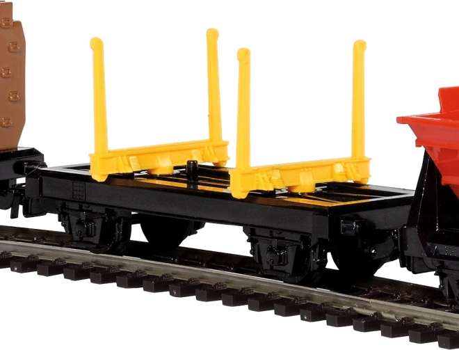 De wagens zijn voorzien van precies gelagerde kunststof wielstellen en standaarduitrusting voor betrouwbare werking. De samenstelling is ontworpen voor duurzaamheid en speelplezier, met behoud van voldoende detail. Minimale opstelruimte 120 × 98 cm maakt eenvoudige plaatsing mogelijk, ook in kleinere ruimtes.