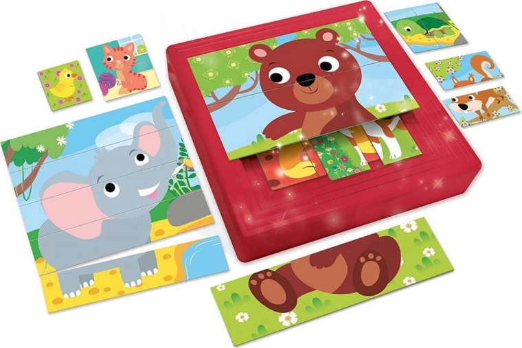 De Progressieve puzzel babydieren 8-in-1 van LISCIANI verrast met prachtige illustraties en een slim leegsysteem. De set bevat een vierkante kunststof doos met negen niveaus aan raamkaders, waardoor kinderen stap voor stap kunnen leggen, van de eenvoudigste tot de meest complexe afbeelding. De stukjes zijn recht, zonder klassieke puzzelvergrendelingen, wat de hantering zelfs voor de jongste kinderen vergemakkelijkt.