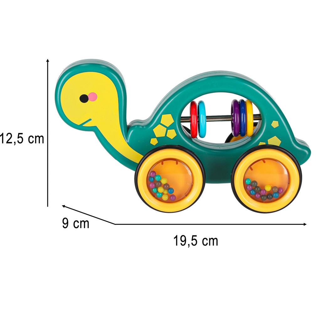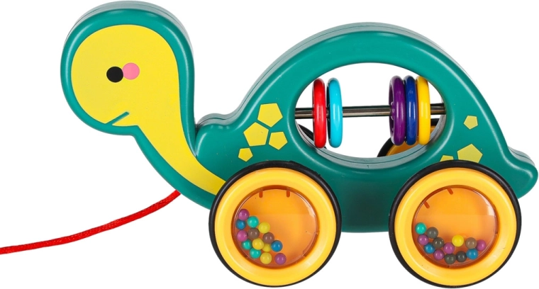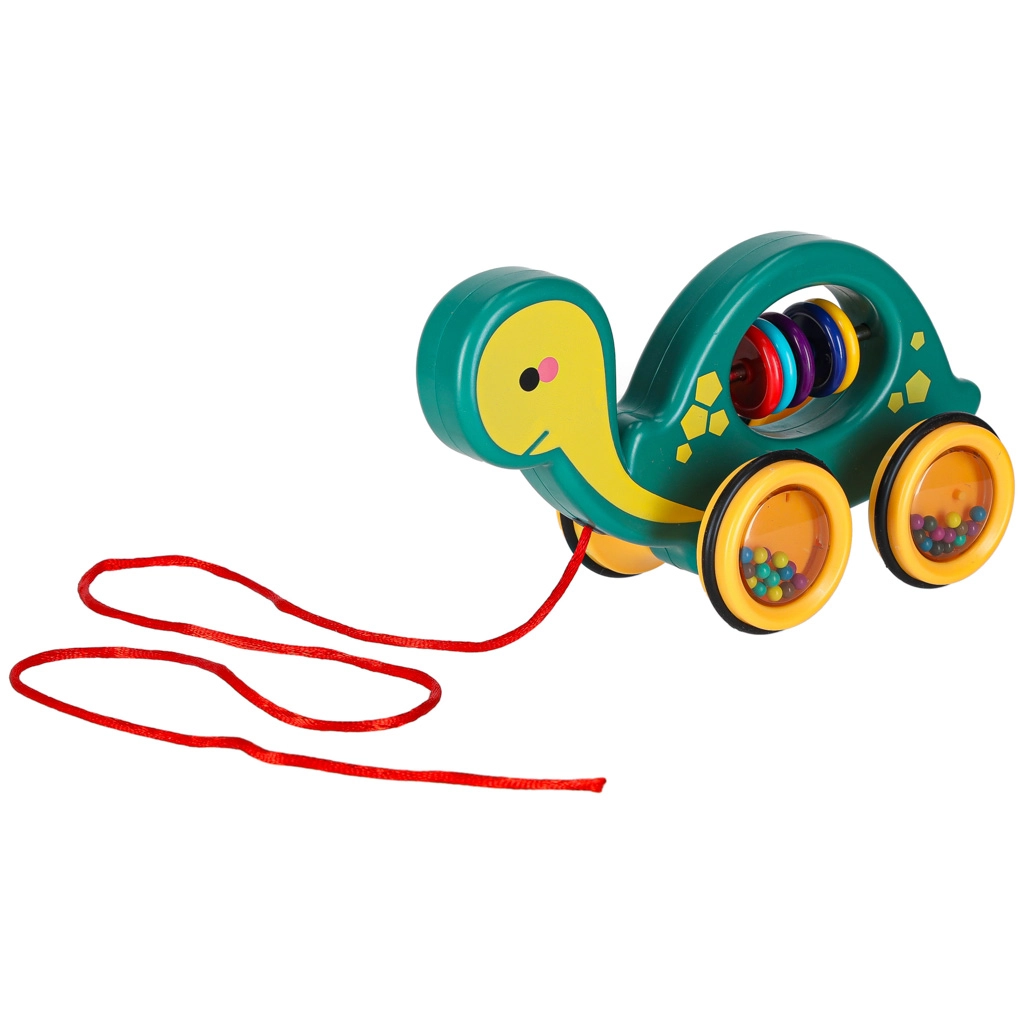 Dit vrolijke trekschildpadje is een perfecte maatje voor thuis en onderweg. Dankzij het koord kan het kind het eenvoudig voorttrekken, terwijl de transparante wieltjes met gekleurde kraaltjes prettig rammelen en tot bewegen motiveren. Het speelgoed ondersteunt de ontwikkeling van grove en fijne motoriek en de oog-handcoördinatie en het begrijpen van oorzaak en gevolg.