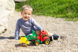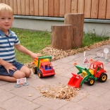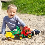 Ontdek de robuuste kindertractor met laadbak, ideaal om thuis en in de tuin mee te spelen. Dankzij de stevige constructie en het kwaliteitskunststof is hij geschikt voor spelen in het zand, op het erf en in de kinderkamer. De voorlader is eenvoudig te bedienen en stimuleert de fijne motoriek en de verbeelding.