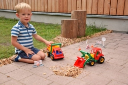 De tractor is gemaakt van hoogwaardig, stevig kunststof dat intensief kinderspel buiten en binnen aankan.