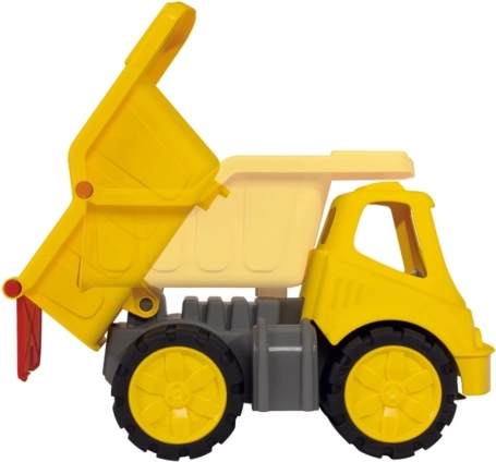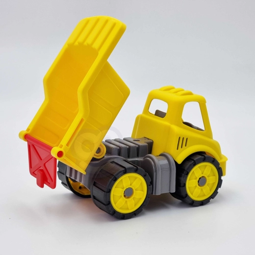 Het speelgoed bootst grote bouwvoertuigen na en trekt met zijn heldergele kleur de aandacht van elke kleine bouwer.