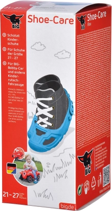 BIG blauwe beschermhoezen voor schoenen: antislip, zacht en duurzaam. Beschermen schoenen tijdens het rijden op de loopfiets. Verstelbare maat EU 21–27.