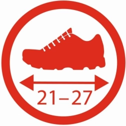 - Verstelbaar, circa EU 21–27