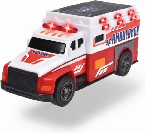 Realistisch speelgoed voor kleine hulpverleners: een kunststof ambulance met vrijloop van 15 cm lang met licht- en geluidseffecten en te openen achterdeuren. Ideaal voor creatief spel voor kinderen vanaf 3 jaar.