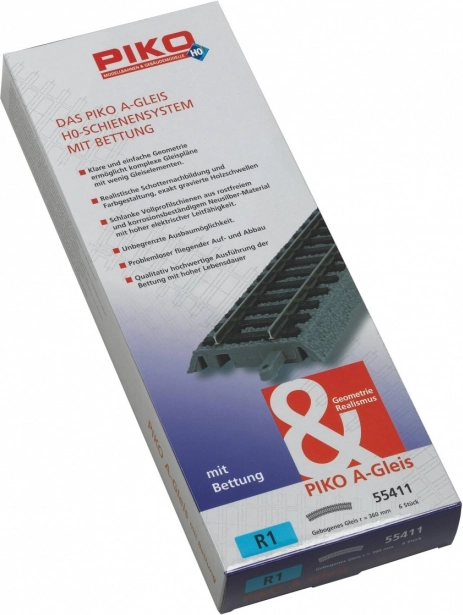 De gebogen rail van het merk Piko biedt een nauwkeurige en gedetailleerde weergave van houten dwarsliggers op een ballastbed, wat zorgt voor een authentieke uitstraling van uw modelwereld. Dankzij de radius van 360 mm is de rail geschikt voor diverse opstellingen en volgt hij natuurgetrouw een echte spoorlijn.