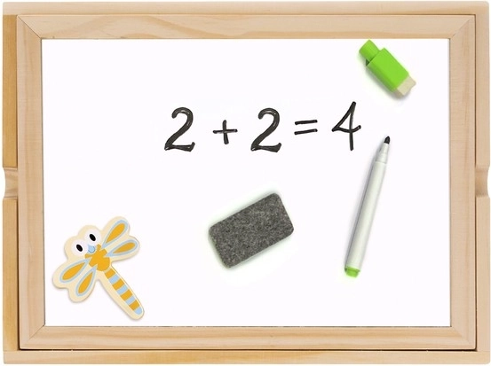 Het bord biedt twee variabele oppervlakken - een wit voor het schrijven met stiften en een zwart voor het tekenen met krijt, wat verschillende manieren van creatief spel mogelijk maakt.