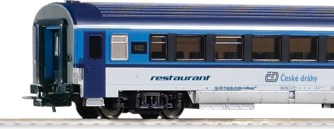 Dit model van het restauratierijtuig ARbmpz 1./2. klas in RAILJET ČD-uitvoering geeft het huidige uiterlijk en de details van de echte treinstellen natuurgetrouw weer. Dankzij de hoge afwerkingskwaliteit en exacte verhoudingen past het perfect in moderne Tsjechische treinsamenstellingen.