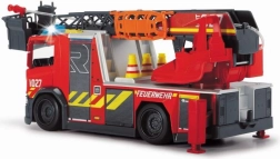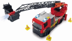 De grote brandweerauto SCANIA Rosenbauer met een lengte van 35 cm biedt kinderen realistische, actievolle speelpret. Voorzien van licht- en geluidseffecten, een uitschuifbare ladder met kooi, water spuiten, te openen zijpanelen, uitschuifbare steunpoten en een praktische reddingsbrancard. Ideaal voor creatief reddingsspel binnen en buiten.