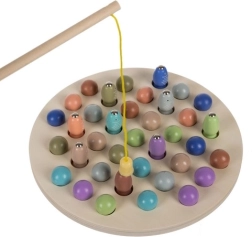 Dit houten magnetische hengelspel is een uitstekende keuze voor de ontwikkeling van kinderlijke vaardigheden. Kinderen vangen kleurrijke visjes met de magnetische hengel, sorteren knikkers en oefenen het hanteren van pincet en stokjes. Het ondersteunt logisch denken, geheugen en vaardigheid, en zorgt tegelijk voor veel plezier.