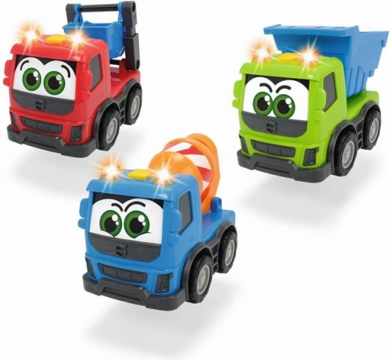 Ontdek de schattige ABC VOLVO vrachtwagen, perfect voor kleine bouwers. Dankzij de vrijloop is hij gemakkelijk te besturen, licht- en geluidseffecten verhogen het speelplezier en het compacte formaat van 13 cm past perfect in kinderhanden. Er zijn 3 types beschikbaar – kiepwagen, betonmixer en vrachtwagen – zodat elk bouwspel anders is.