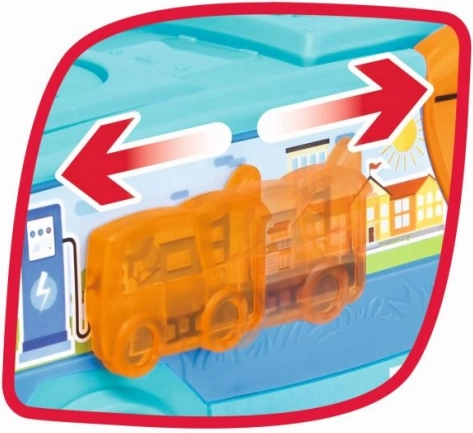 Kinderen kunnen de deuren openen en het zij-element bewegen, wat de fijne motoriek stimuleert en realistische stads scènes mogelijk maakt.