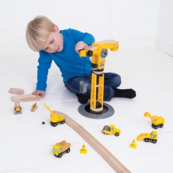 Ontdek de tijdloze houten bouwset met grote kraan van BIGJIGS RAIL, die creatief spel, ontwikkeling van de fijne motoriek en coördinatie stimuleert. Inclusief bouwmachines, arbeidersfiguren, pionnen en barrières – alles klaar voor een fantasievolle bouwplaats. Compatibel met de meeste houten treinbanen op de markt.