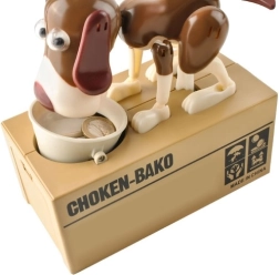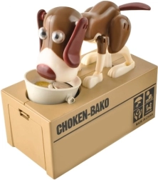 Zoek je een motivatie om kinderen enthousiast te maken voor sparen? De interactieve spaarpot CHOKEN-BAKO is precies dat. Leg een muntje in het bakje en druk er zachtjes op – het hondje beweegt met ogen, oren, hoofd, pootjes en staart, maakt geluid en “eet” het muntje op, dat in het veilige reservoir valt.