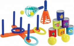 Geniet van plezier met de Spelset 3 in 1, die drie populaire spellen voor binnen- en buitengebruik bevat: vang de bal, ringen op kruis en blikjes omverwerpen. Gemaakt van duurzaam plastic in Frankrijk.