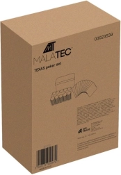 doos: vertind staal; kaarten: papier; speelvilt: polyester; fiches: PP; ficherek: PP
