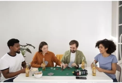 Alles wat je nodig hebt voor een thuistoernooi: 200 fiches, 2 kaartspellen, functie-fiches en een speelmat in één draagbare set.